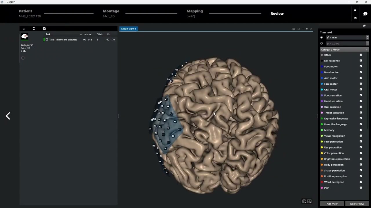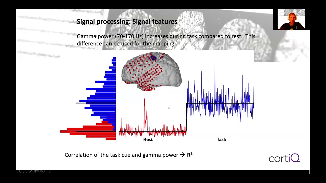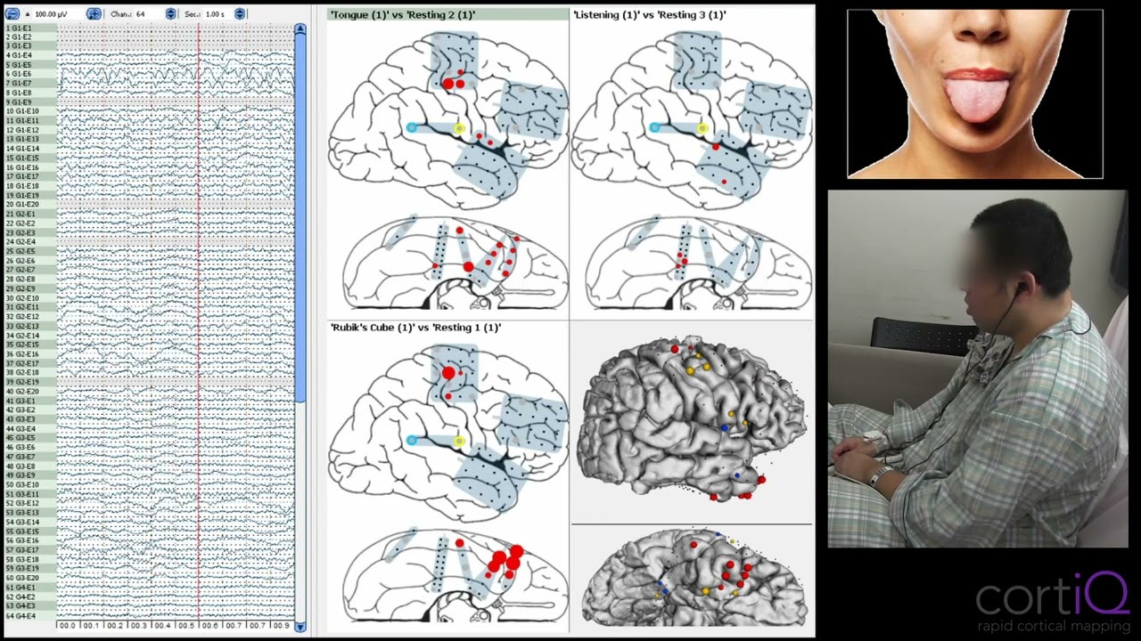 Therefore, cortiQ can identify neural areas that are “active” in a task decided by the surgeon and thereby provide a fast pre-screening mechanism that might be used for optimized ECS mapping and surgical removal of affected tissue.