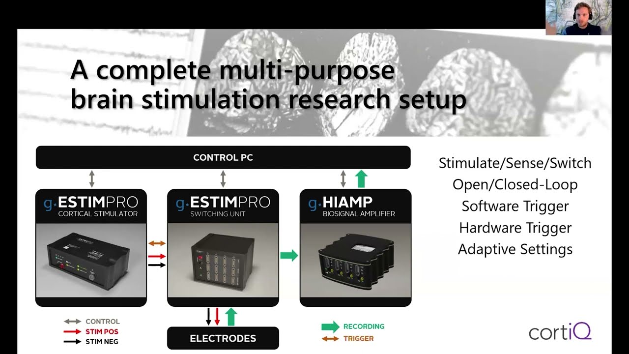 The cortiQ rapid cortical mapping system by g.tec medical engineering utilizes electrocorticographic (ECoG) signals for fast, precise, and pain-free brain mapping, accurately identifying regions related to language, motor, and sensory functions. This method, combined with quick confirmation using the built-in ECS module, offers a safer alternative to traditional techniques like electrical cortical stimulation (ECS) and fMRI, which can be time-consuming, seizure-inducing, or unreliable.