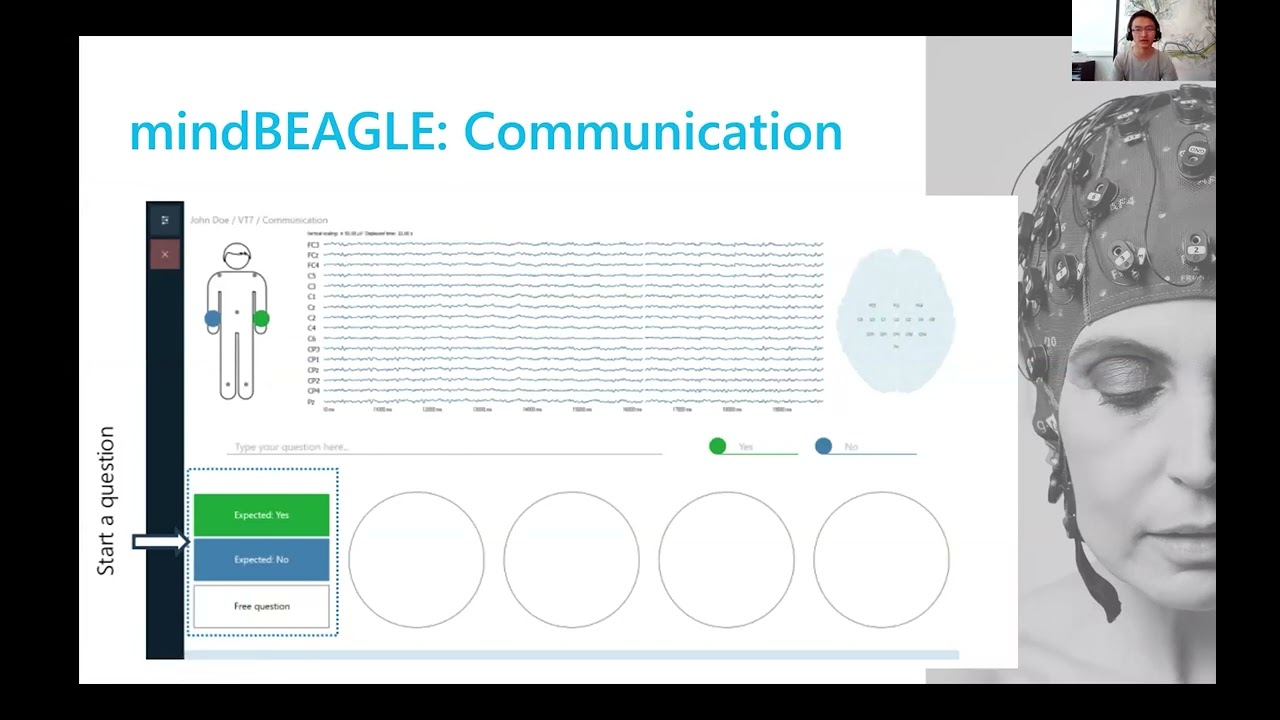mindBEAGLE uses Brain-Computer Interface (BCI) technology for quick and easy assessment of DOC and LIS patients and even provides basic communication with some of them. It is used to determine whether patients can understand and follow basic task instructions, even though they are diagnosed as people in a vegetative state (VS, also called UWS or Unresponsive Wakefulness Syndrome), minimally conscious state (MCS) or (completely) locked-in state (LIS/CLIS).