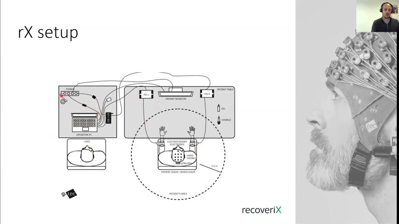 This presentation shows a practical session of recoveriX for stroke therapy. The session includes demonstrations of how stroke patients can use recoveriX to control lower limb exoskeletons or functional electrical stimulation devices through brain-computer interface technology, showcasing its potential for promoting motor recovery and functional independence in individuals recovering from stroke-related impairments.